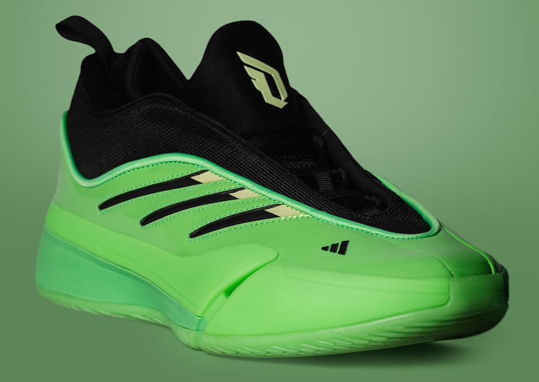 The DON Issue 6, Dame 9, and Adizero Select 3.0 all feature the same volt green hue, with the DON opting for a secondary shade of white and the other two models hosting black contrasting hues. The same contrasts are applied to the Harden Vol. 9 and the AE 1 Low, though Harden’s shoe comes in a darker shade of green, and Ant-Man’s shoe takes on a pearlescent, color-changing hue.