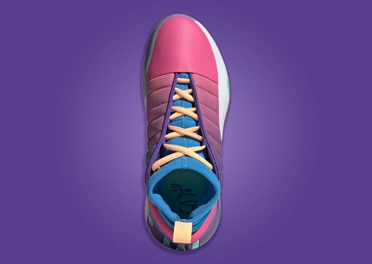 The Harden Vol. 7 Training Camp edition stays true to its roots in terms of construction but makes a compelling style statement. The silhouette boasts a leather toebox that segues into a canvas midfoot overlay, taking cues from the design aesthetics of puffy outerwear. Ensuring a snug fit is an internal neoprene bootie. The shoe showcases a bold touch of pink covering the toebox, which sets the stage for a mesmerizing gradient pattern that travels from pink to purple along the midfoot. This vibrant transition culminates in a deep purple felt at the heel, juxtaposed against a backdrop of pink mesh. The internal sockliner brings in refreshing blue undertones. Performance isn’t compromised with the inclusion of JET BOOST and Lightstrike cushioning technologies, accompanied by a high-traction rubber outsole.
