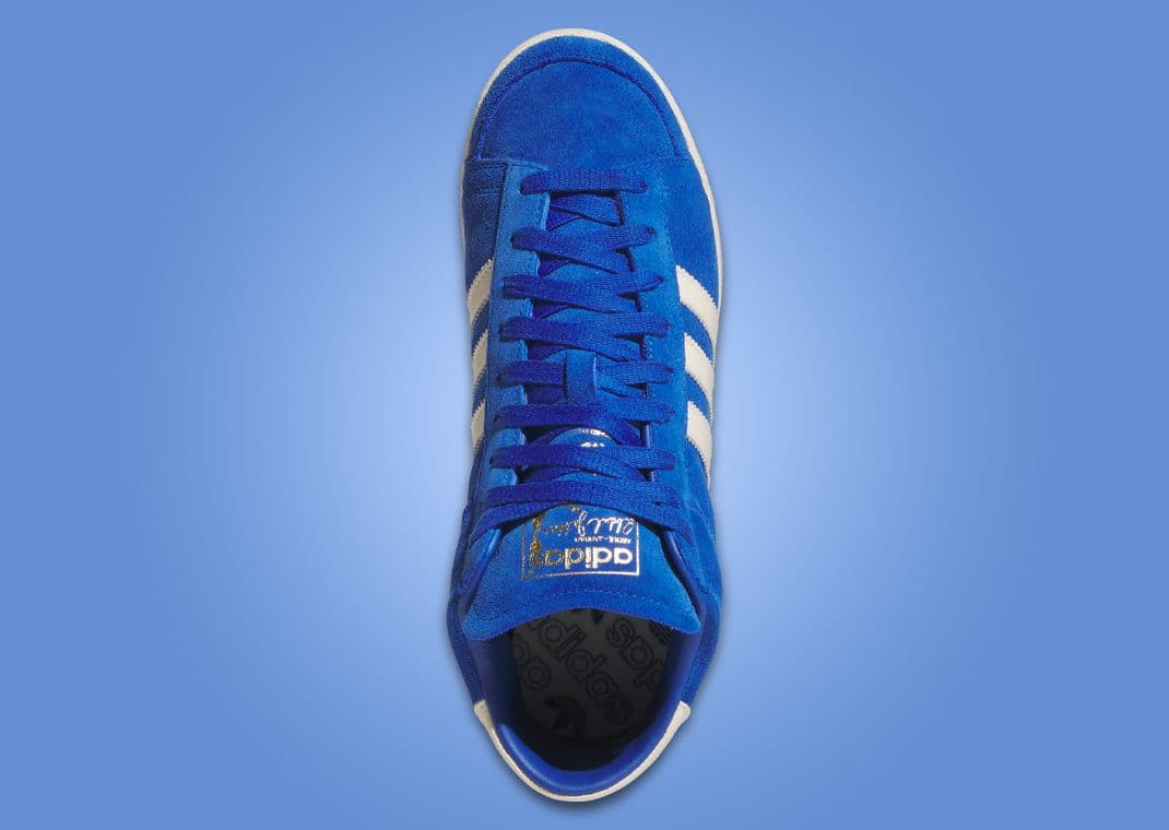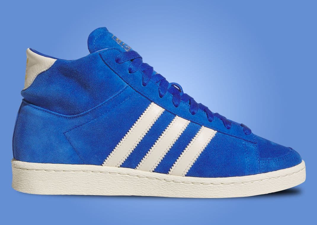 With a timeless look, the adidas Jabbar Hi Team Royal Blue arrives crafted from smooth suede and adorned in a rich blue hue, offering a bold and striking appearance. This hue extends to the heel collar, ensuring a consistent and cohesive look across the sneaker's profile. Cream White leather accentuates the design, strategically placed via the Three Stripes branding, seamlessly overlaying the midfoot for a traditional adidas touch. The heel tab, made of the same leather, features a gold foil Trefoil logo, adding elegance and a nod to the brand's storied heritage. This combination creates a refined contrast that captures the eye without overpowering the overall aesthetic. Adding to its retro-infused vibe, the tongue, also dressed in team royal blue suede, holds a large gold foil graphic of Kareem Abdul-Jabbar, complete with his signature. Completing the look, this all sits atop an off-white rubber sole, balancing the color palette while ensuring durability and comfort.
