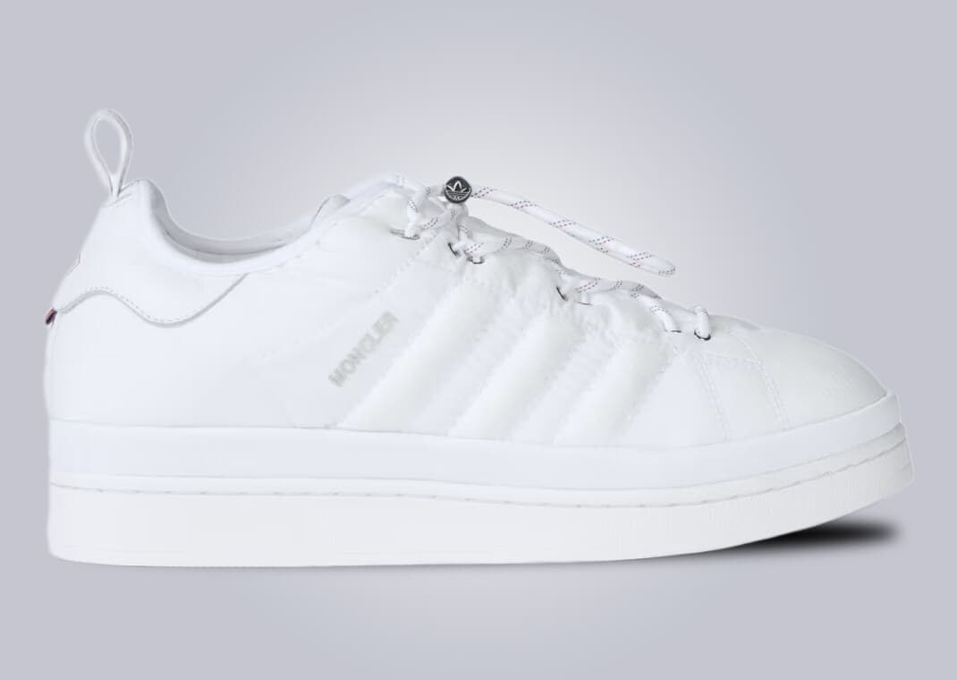Following the official lookbook, early images of a puffy version of the adidas Campus with Moncler co-branding emerged. Like many of the pieces in the collection, the two colorways revealed feature vibrant eye-catching shades, one "Volt" and one "Royal." Moncler branding is placed near the collar in a silver finish with co-branded details landing on the internal leather tongue and heel tab. A standard adidas Campus midsole and outsole complete the look.