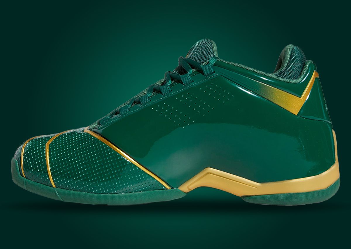 Worn on-court by LeBron James in the early ‘00s, adidas is set to bring back one of Tracy McGrady’s most popular signature sneakers. The adidas T-Mac 2.0 Restomod is an updated version of the classic T-Mac sig, modernized for today’s baller’s needs. Featuring an all-green theme, the adidas T-Mac 2.0 Restomod “SVSM” edition comes in a team dark green, gold metallic and cloud white. Sporting an all-green patent leather upper with metallic gold accents, the sneaker is finished off by a Bounce cushioned sole.