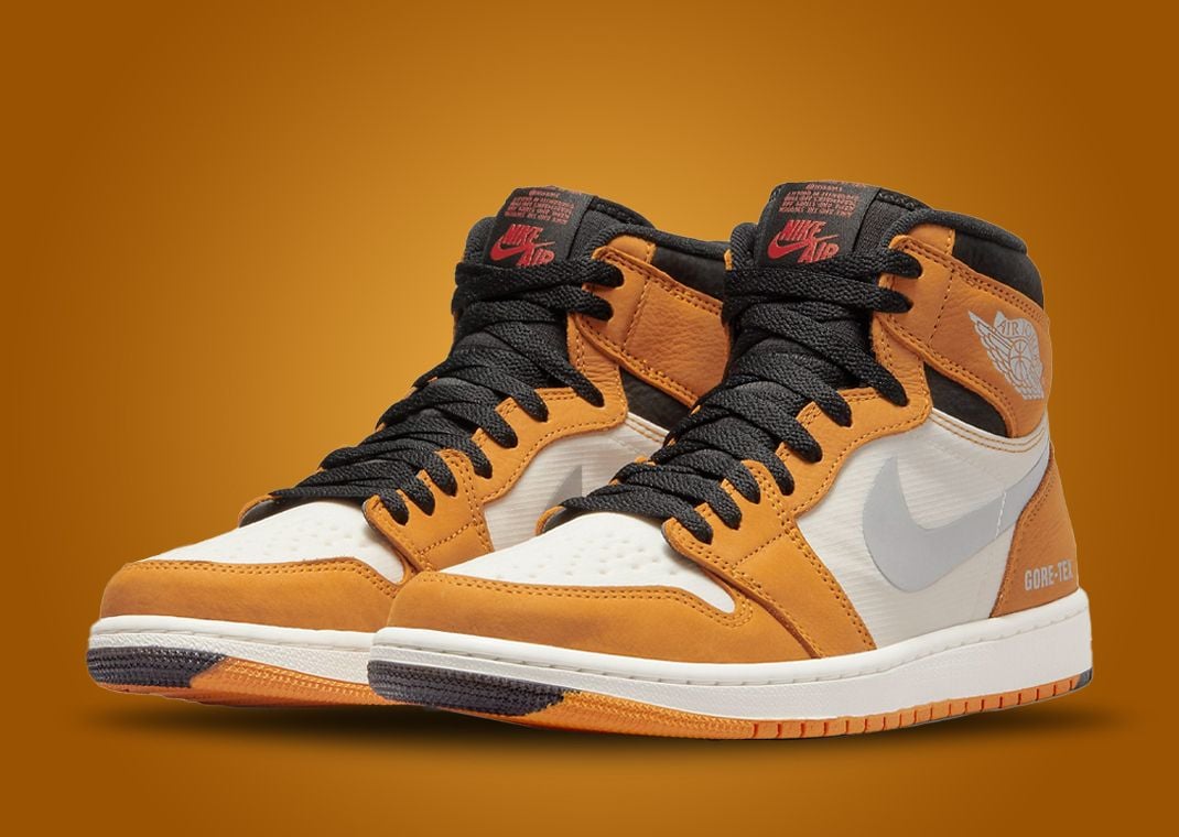 Made to combat the elements of the harsh winter weather, the Air Jordan 1 Element was designed to keep your feet cozy, dry and warm, all while staying stylish. Waterproof GORE-TEX covers the toe box and underlays while premium nubuck leather in light curry dresses the overlays. Black accents the gusseted tongue, laces, plush collar lining and inner bootie. Cardinal Red is found via the branding on the tongue tag with 3M reflective branding via the Wings logo, Swoosh on the sides and GORE-TEX on the heel.