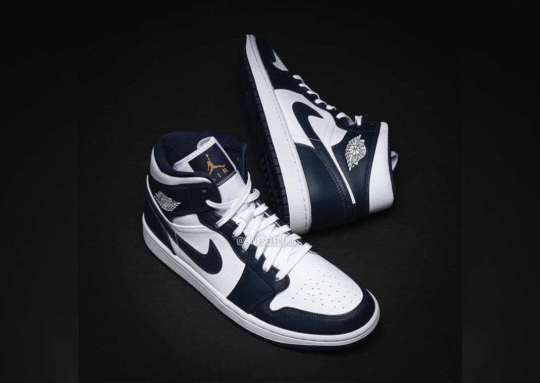 Obsidian Shades Come Accented By White And Gold On This Air Jordan 1 Mid
