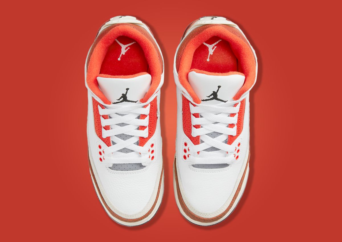 The Air Jordan 3 Retro "Mars Stone" GS comes in a clean white, black, mars stone, team orange, and sail. It features a white-based tumbled leather upper, accented by team orange via the lining, top eyelets, and around the middle set of eyelets. Mars Stone can be seen on the leather elephant print detailing, adding a luxe vibe, as well as wrapping around the collar, and midsole. A nice aged, sail-colored midsole and back heel tab are finished off by a black solid rubber outsole.
