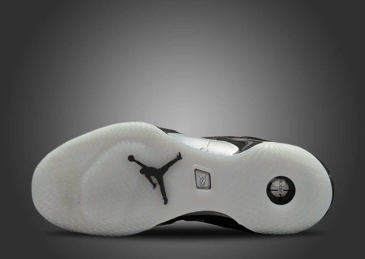 Dressed in stealthy black across the majority of the sneaker, hints of white throughout provide some contrast to this Mustang-like AJ 36. Leno-weave wraps around the toe back to the heel, separated from the mesh and tumbled leather tongue buy hits of black and white patent leather. On this tongue, the usual Jumpman branding gets reworked to appear like the classic Ford Mustang logo. Working back to the heel, a red spoiler peeks out just below a red, white, and blue flag that is painted on the nylon pull tab. Rounding out the look is the black midsole featuring a carbon fiber plate and Zoom Air cushioning paired with a white semi-translucent rubber outsole.