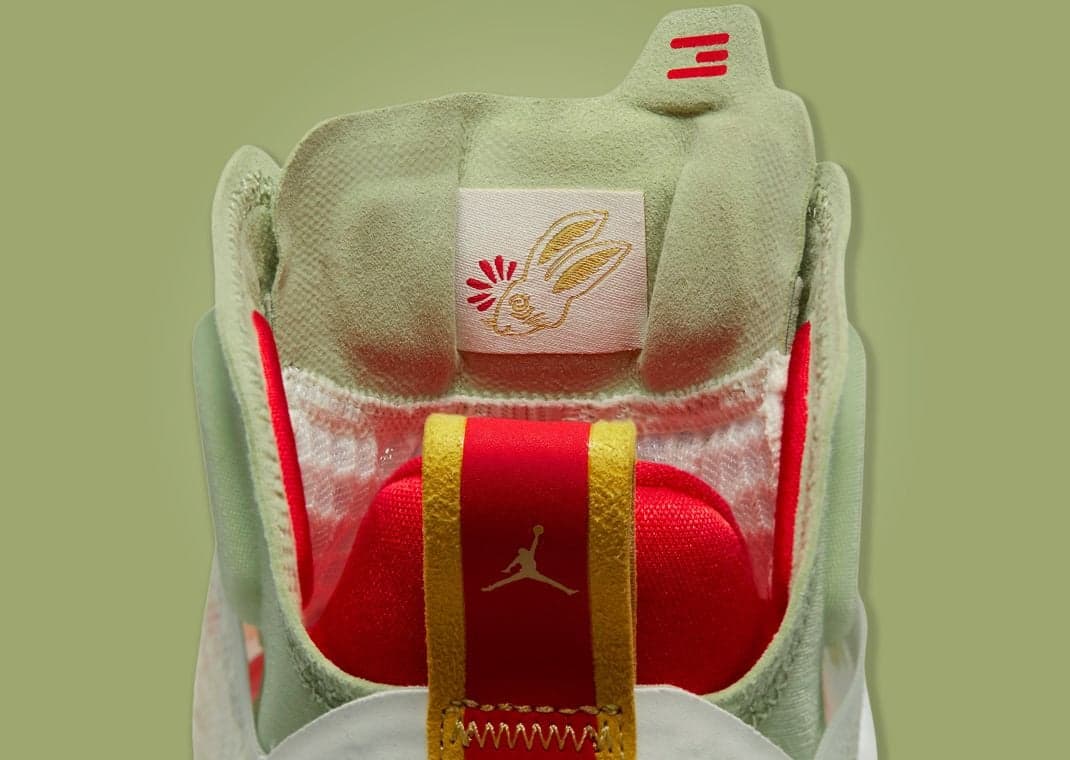 Coming in a YOTR-themed colorway, the Air Jordan 37 "Year Of The Rabbit" sports a cream-based jacquard Lenoweave upper, paired with light olive accents. Subtle hits of red and metallic gold add some pop, with custom printed insoles representing the CNY. The custom branding continues on the tongue tags, both inside and out, with a unique rabbit on the inner. All of this comes housed in special packaging, providing a premium look.