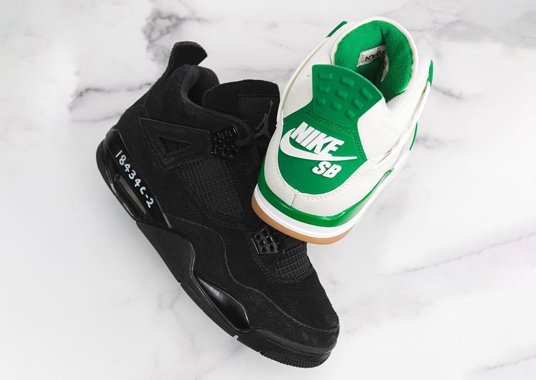 One of the best sneaker releases in recent memory, the collaboration between Nike SB and Jordan Brand on the Air Jordan 4 has changed the model for the good. Going forward, Nike has retooled the AJ4 to feature the same tooling and shape as the skate-ready version released in 2023. Leading up to the release of the pair, skaters like Paul Rodriguez were testing the retooling by wearing an all-black pair of AJ4s that many thought was the pair that would be released. However, we eventually received the Pine Green colorway, with currently no other Jordan 4 SBs confirmed to release. Thanks to English Sole, we have an up-close detailed look at the all-black wear test sample of the Jordan 4 SB.