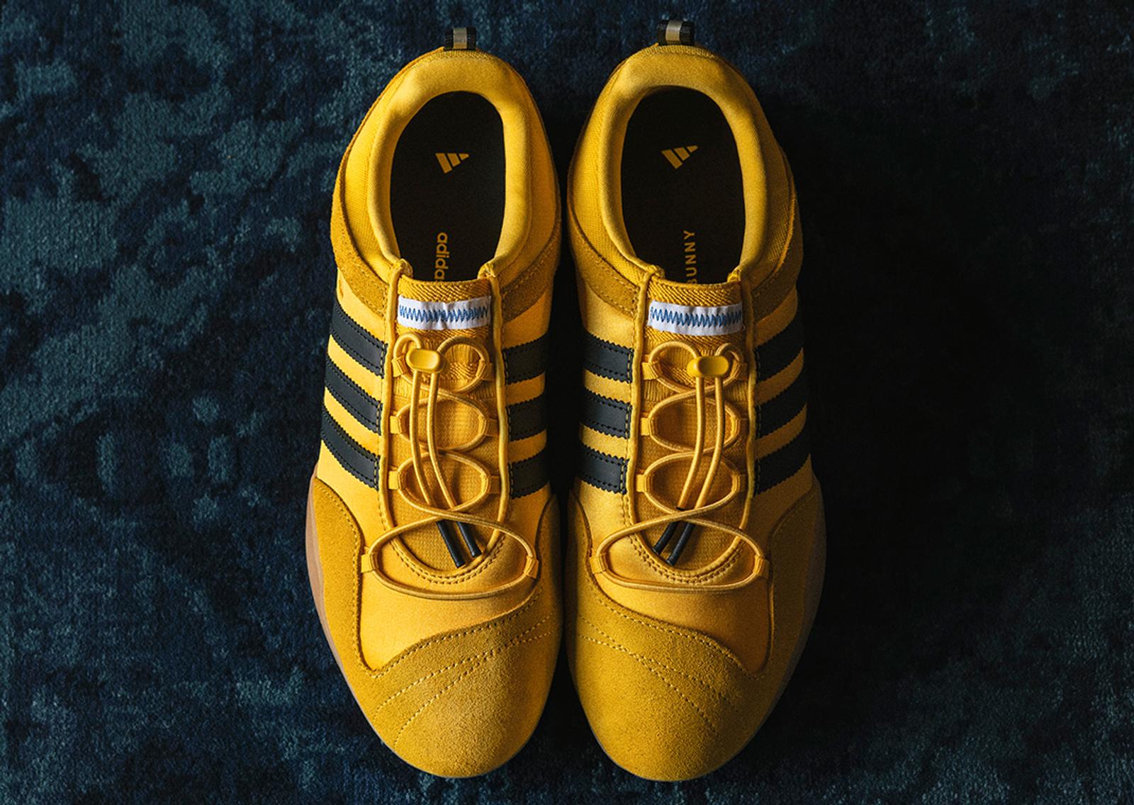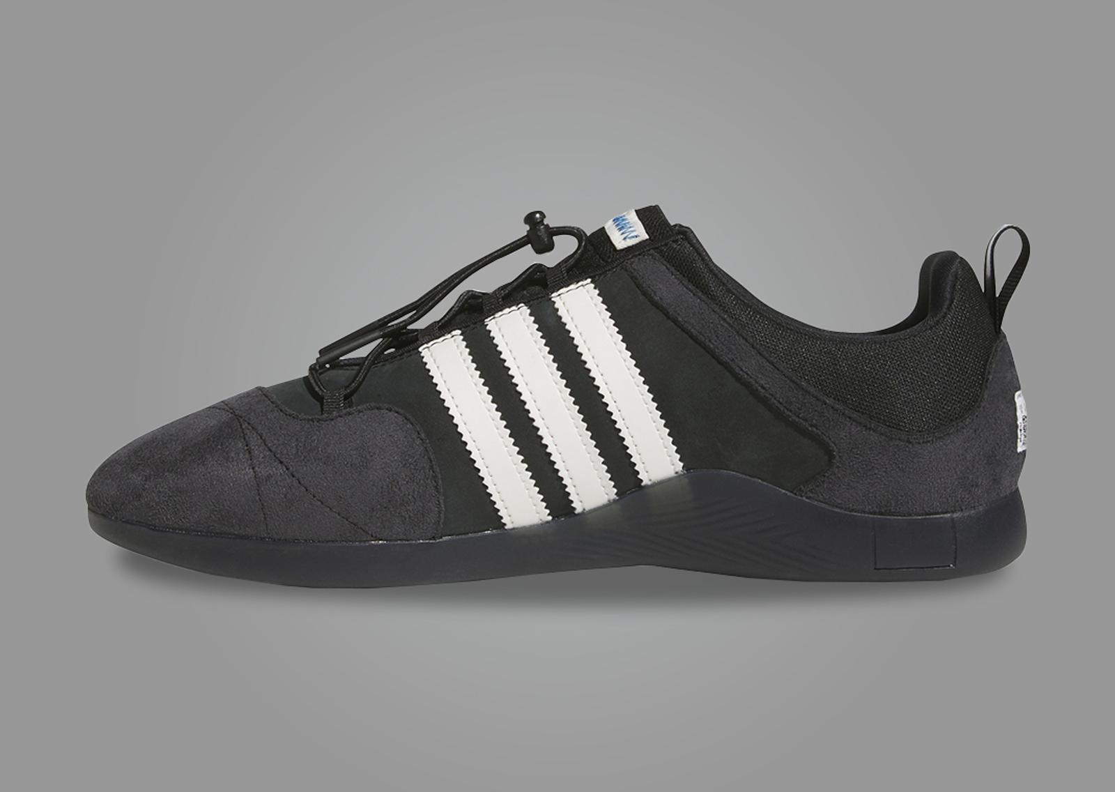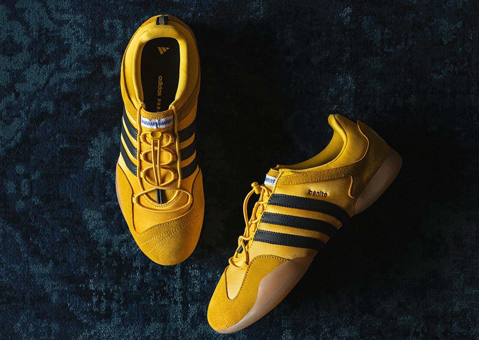 Seen in three color palettes, one in Off White, the other in Core Black, and a third in Bold Gold, the pair resembles the aforementioned adidas Taekwondo from 2019, a lace-less slip-on low-top silhouette. However, Benito adds ballerina-inspired design details, like the satin paneling on the base layer, to help create an all-new sneaker. Suede panels add textural contrast to the upper and come located on the toe and heel.