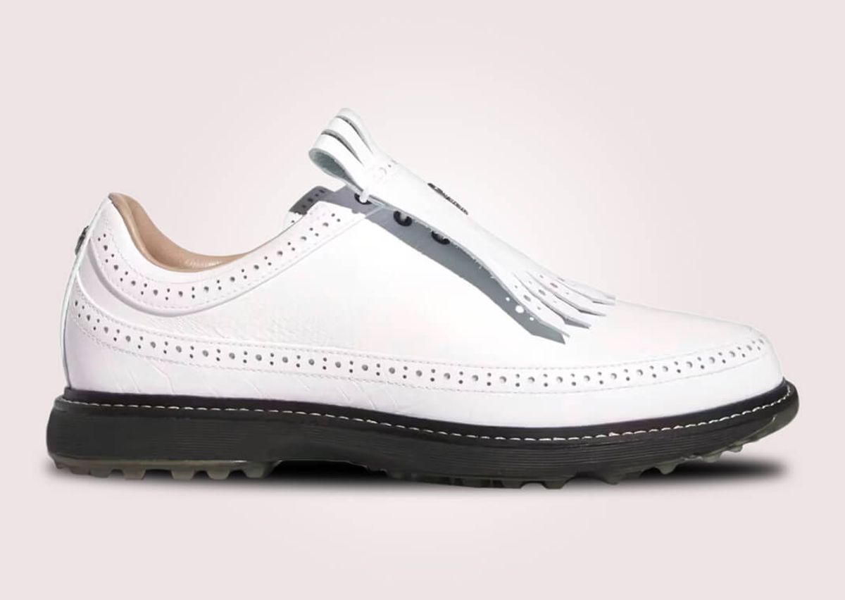 The star of the show is undoubtedly the adidas MC80 spikeless golf sneaker. Debuting via the collaboration with Bogey Boys, the silhouette boasts an all-white premium leather upper with brogue stitch detail. Croc texturing throughout the midsole delivers a sophisticated finish, further enhanced by a leather sockliner and lining. adidas' hallmark TORSION bar and concealed BOOST cushioning in the heel ensure unmatched comfort and stability. The adidas Trefoil and Bogey Boys logos round off the design, nestled on a removable kiltie and the back of the heel. Inline colorways of the sneaker will launch later in the year.