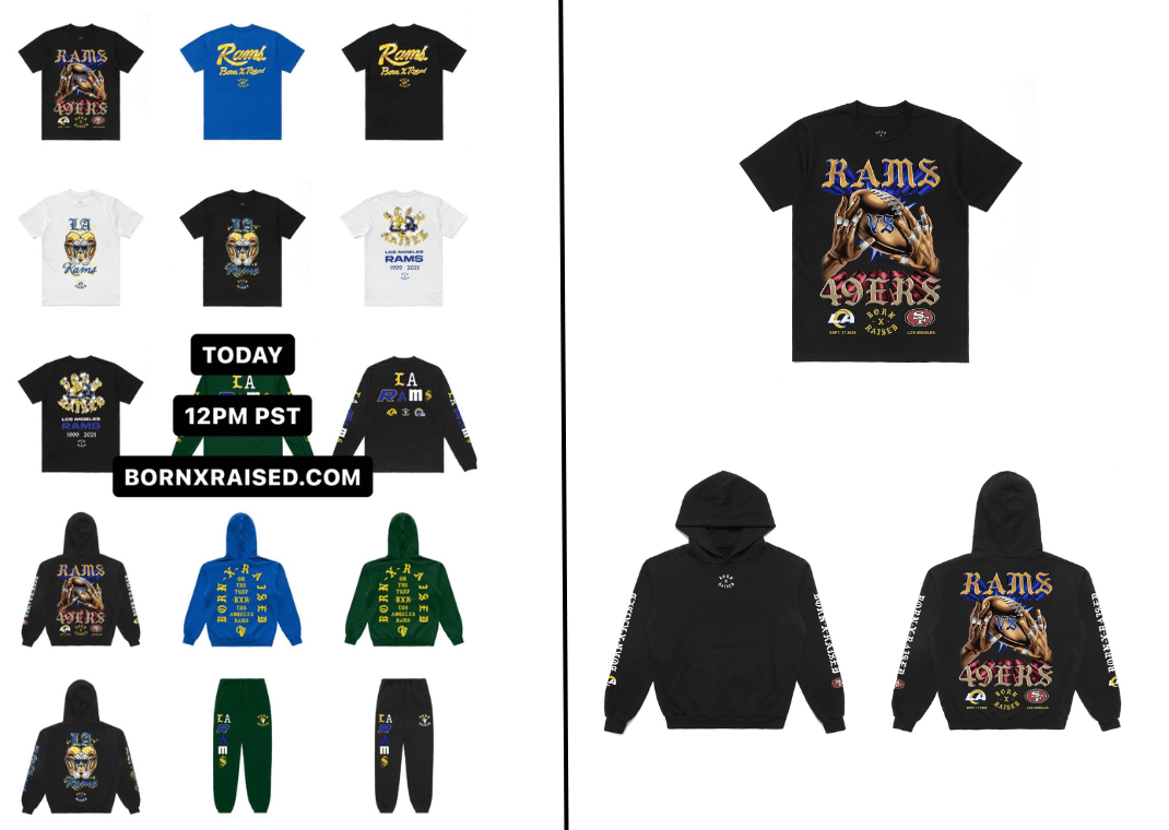Iconic LA streetwear brand Born X Raised and the Los Angeles Rams will celebrate the Rams home opener against the San Francisco 49ers and the legacy of Born X Raised co-founder Chris "Spanto" Printup through a collaborative capsule. This marks the third merchandise collaboration between the two brands, highlighting their mutual dedication to the city of LA. Remembering Printup, an ardent Rams fan who passed away in June, the collection tells the "real story of LA." Exclusive designs feature Born X Raised's distinctive iconography, captivating graphics, and a homage to the Rams' 1999 and 2021 Super Bowl victories.