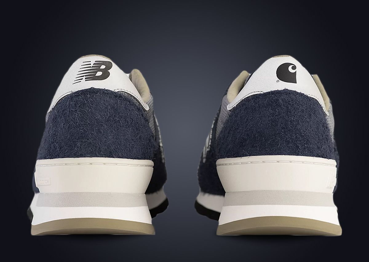 A suede and mesh combo remains present with Carhartt WIP choosing to raise the suede's nap to an 11/10, creating a worn-in scruffy finish along with the navy-colored overlays throughout. Its mesh base stays true to classic New Balance colorways, coming in grey while the N branding on the midfoot follows suit in a 3M reflective silver with a white trim underneath. Carhartt WIP makes an appearance on the right sneakers tongue tag and the left sneakers heel overlay through the brands' logo. A tan-colored sockliner and insole break up the two-tone look seen throughout, utilizing Carhartt’s distinct color palette. Rounding out the look is the Vibram cushioned white midsole and black rubber outsole with a solo hit of tan on the heel.