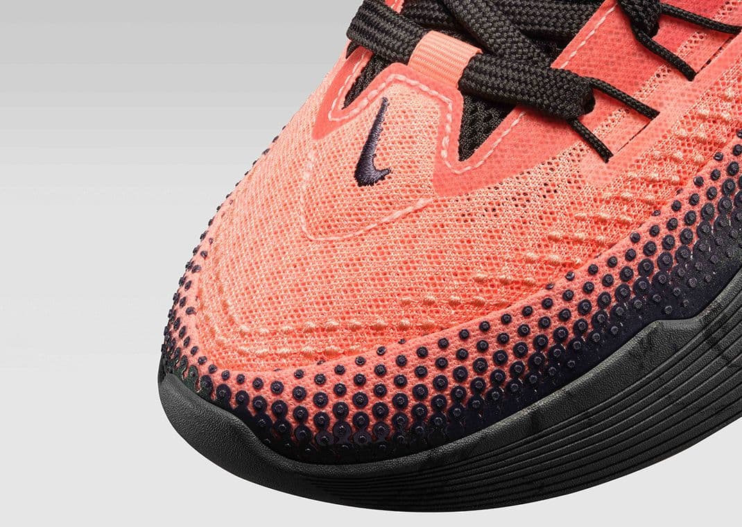The reinforced rubber is paired with a full-length macro herringbone traction pattern, giving players the grip they need for quick stops, sharp directional changes, and explosive takeoffs. Cushioning is handled by a plush Cushlon 3.0 foam midsole paired with a forefoot Air Zoom unit for responsiveness and energy return during fast-paced play.