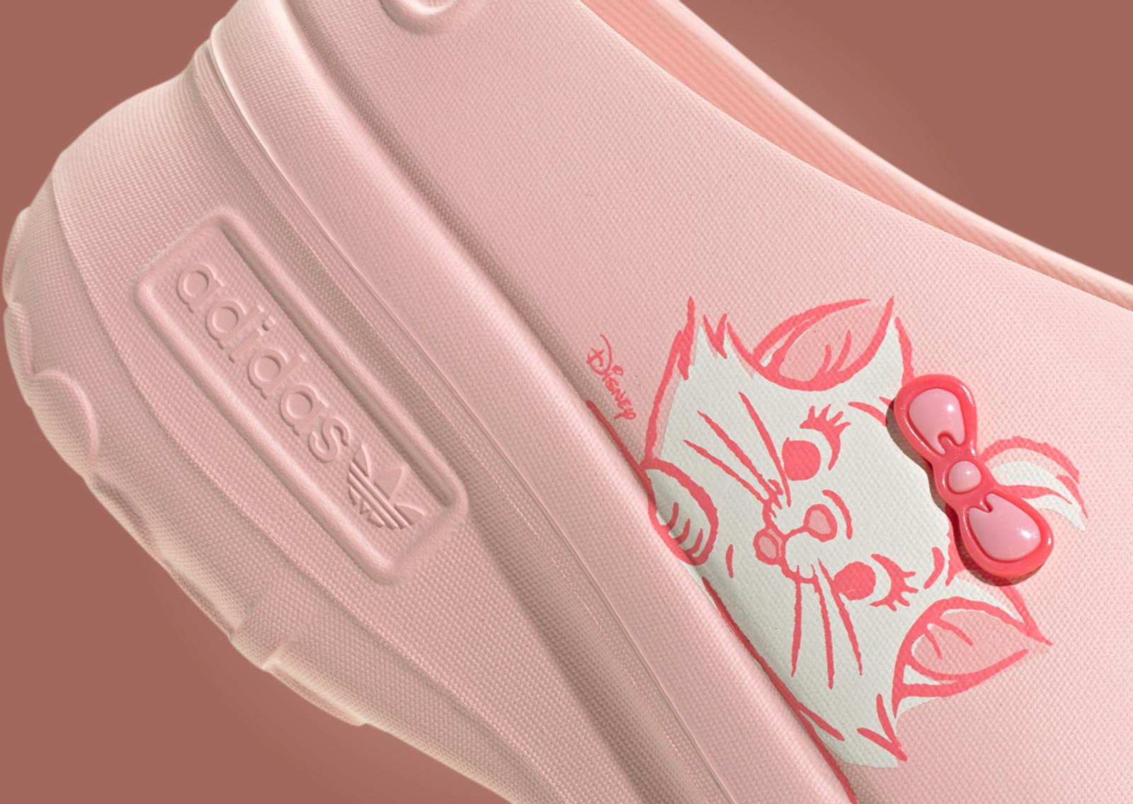 Alongside the Gazelle Bold, Disney and adidas have crafted two colorways of the Adifom Stan Smith Mule, a platform clog silhouette. Each pair has the same added branding features, including Marie peeking over the edge of the lateral profile, a bow stamped along the toebox, and co-branded logos on the footbed. One colorway is entirely coated in Sandy Pink, while the other comes in Focus Blue.