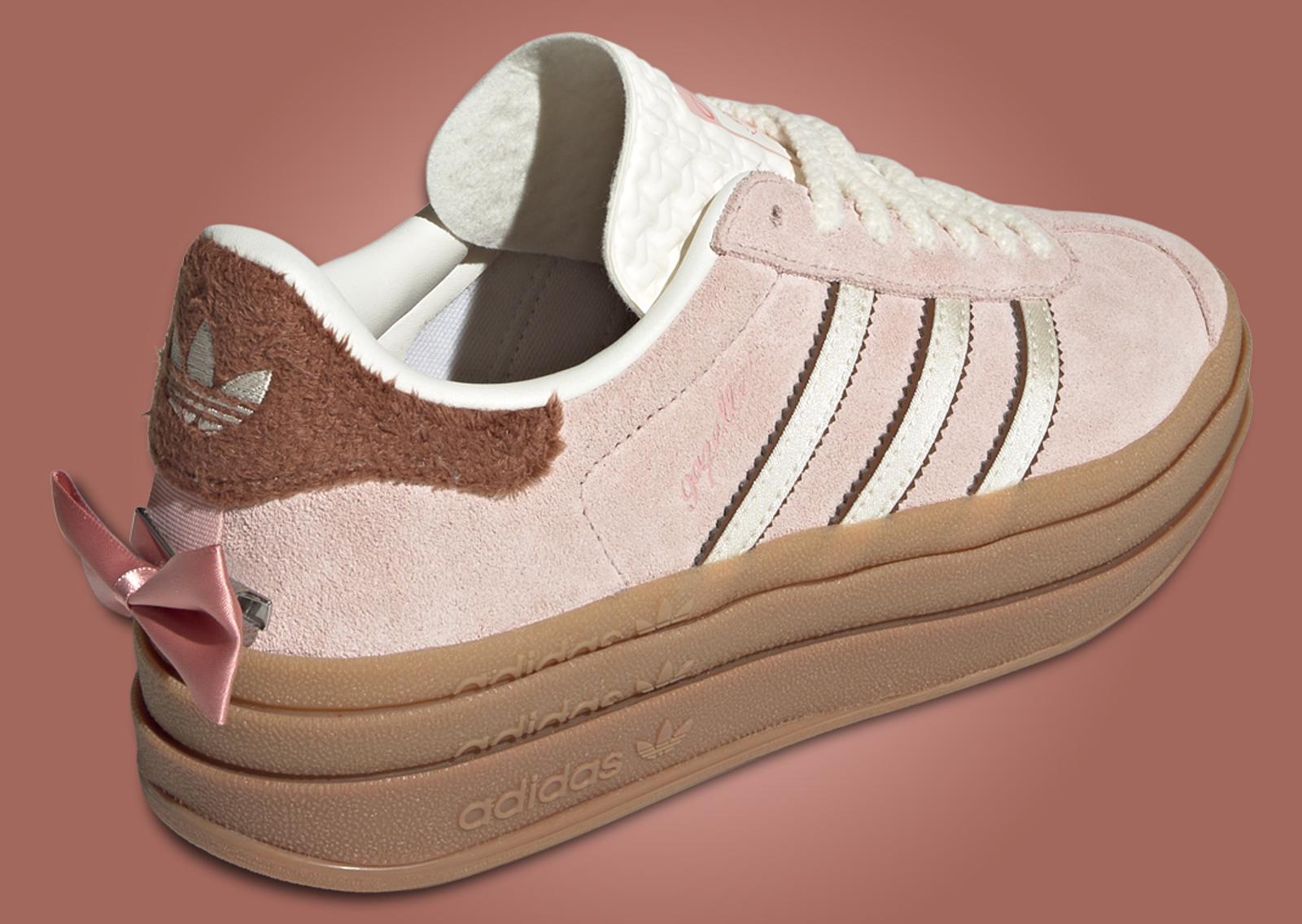 The headline of the three-pack is the adidas Gazelle Bold Marie, which brings Turkish Angora to life through its color palette and added details. A light pink suede is applied across the upper, accented by fuzzy brown fur on the heel tab and brown serrated material on the outline of the satin cream Three Stripes. More cream hues are on the fuzzy lace set, textured leather tongue, and smooth leather sockliner. A depiction of Marie finds a home atop the tongue tag while her iconic bow is attached to the heel.