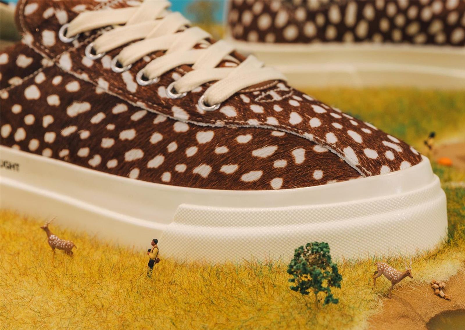 The latest END x Stepney Workers Club collaboration is a three-pack collection consisting of the Dellow, the Dellow S-Strike, and the Lister. Each sneaker features the SWC vulcanized midsole, printed with the SWC “Handshake” logo along with “FREEDOM OF THOUGHT” printed on the Lister and “FREEDOM OF SPORT” printed on the midsole of the Dellow. The uppers are done in pony hair, each sneaker featuring a stitched outline, and the scientific family and species name of each animal on the back of the tongue tag, while the front of the tag has the END logo featured on the Dellows and the SWC handshake logo featured on the Lister. The animal prints are printed directly onto the upper, with cream laces and heel tab detailing on the Dellows while the Lister has black piping and black elastic accents for the laceless sneaker.