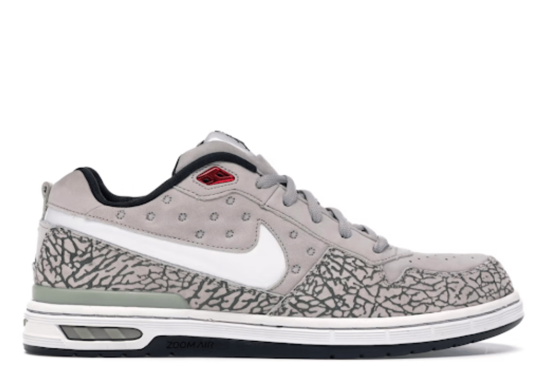 Paul Rodriguez showcased his love for Jordan Brand and was the first person to make Nike SB x Jordan a reality, though it wasn't on a Jordan Brand model. For his first signature sneaker with Nike SB, P Rod fused AJ 3 elements, specifically the elephant print details, onto the mudguard and heel overlays. Other Jordan motifs include the Jumpman logo on the heel and on the tongue tag.