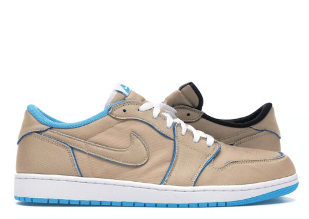 Following his work with Jordan Brand and Nike SB on one of the original mash-ups back in 2014, Lance Mountain again was tasked with crafting a colorway for the fusion of basketball and skate-ready sneakers. This time, Mountain utilized the AJ 1 Low and brought another wear-away upper with him. Covering the sneaker in a desert ore-shaded canvas, the sneaker would eventually reveal itself to be a split-colored “UNC” and “Royal” on the right and left shoes respectively.