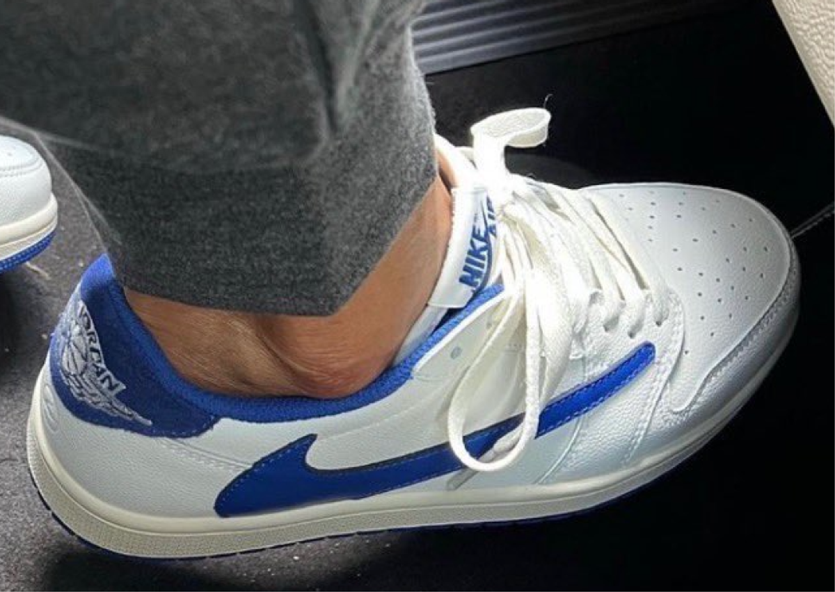 Before launching the triple-branded fragment design x Travis Scott x Air Jordan 1 Low, Hiroshi Fujiwara showcased a sample pair of the model. He was spotted rocking the pair courtside at an NBA game. The model has an almost all-white appearance with premium tumbled leather, while vibrant blue hits land on branding details like the reverse Swoosh, Nike Air text, and the heel tab. Fragment’s lightning bolt logo gets debossed into the heel. Rumored to be a 1-of-1, this pair will likely never leave Fujiwara’s closet.