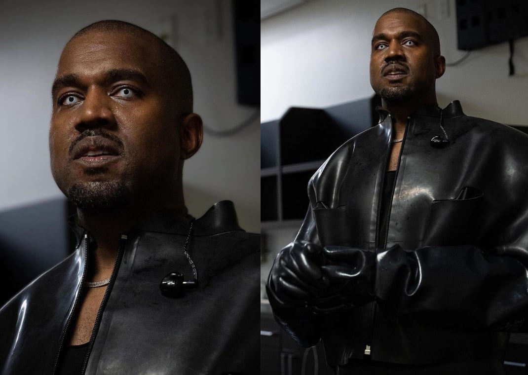 Ye recently dressed in hoodies, jean jackets and his own Yeezy Gap Round Jacket leading up to his performance. For the Tuesday-night listening party, Kanye opted for a custom approach. Greg Ross, one of Kanye’s many designers, helped design this custom black latex Moto jacket in collaboration with BustedBrand, an LA based latex and lingerie boutique.