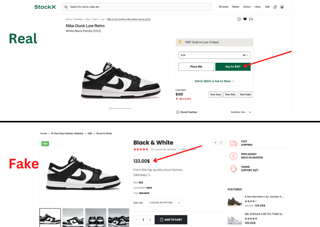 As the internet became more prevalent, the market for fake sneakers moved online. Forums such as Reddit and other online marketplaces became popular places to buy and sell replica sneakers. Online secondary marketplaces for buying authentic products like StockX caused these forums to grow in popularity, as the sneaker scene went mainstream and sneakers began being viewed as an asset rather than part of a niche subculture. Readily available real-time pricing paired with the growth in the sneaker market caused popular sneakers to become harder to get at retail prices. Thus, if someone was after a certain drop but wasn’t lucky enough to score a pair for retail, they had to either pay high resale pricing or buy reps.