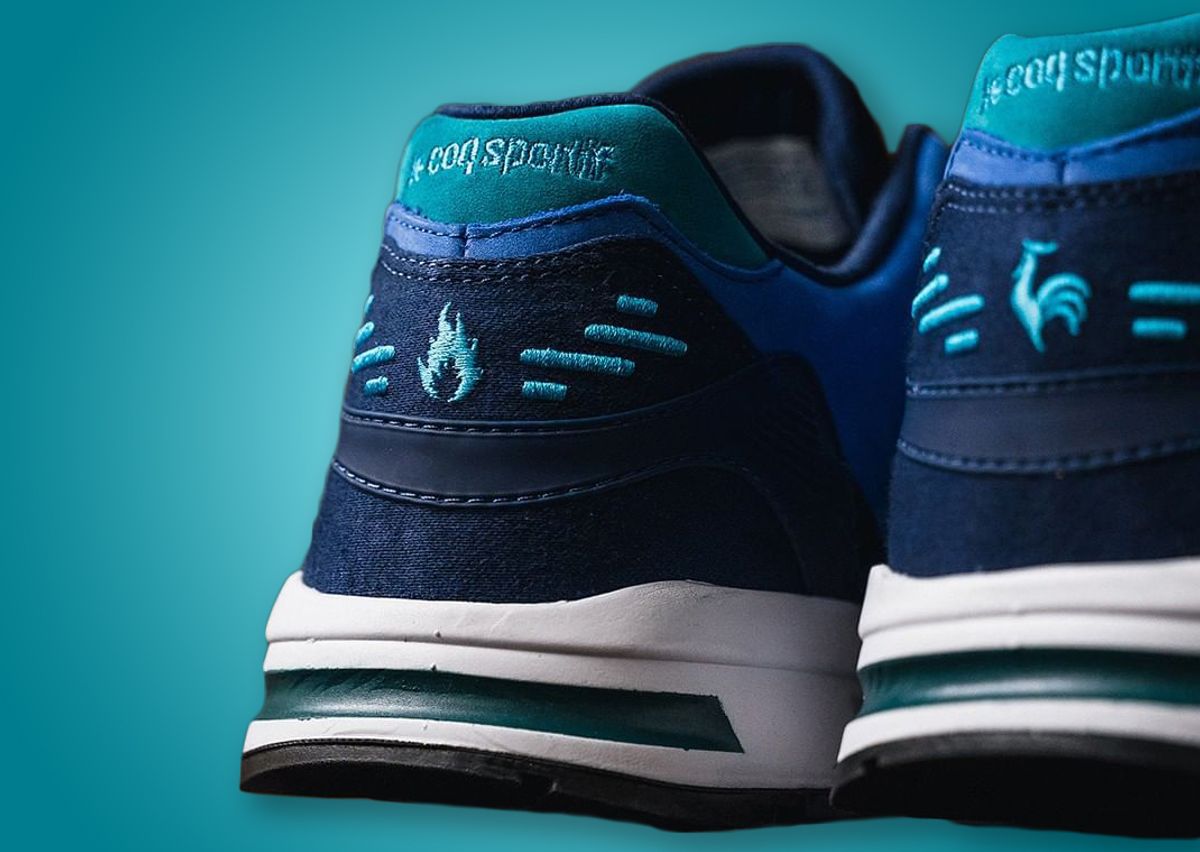 The colorway draws its name from the bar in which Emile Camuset, the founder of Le Coq Sportif, owned and began what eventually became the large sportswear brand it is today. Frequent patrons at the bar were often blue-collar workers, and that is where the various shades of blue across the premium suede and nubuck upper come from. Darker blues land along the mudguard, tongue, and heel while an additional panel on the mudguard and along the collar gets a more vibrant shade. Teal shades are found around the perforated toebox, eyestays, heel, and quarter panel, the latter of which hosts the famous Rooster logo for Le Coq Sportif. More branding details come in the form of embroidered logos with each brand making it to one of the two heels and the tongue labels. Representing the “Circle Of Friends” itself is a graphic atop the footbed and box while the multi-color lace set also symbolizes friendship as a whole. Rounding out the design is a white foam midsole featuring Dynactif, a dual-density foam, paired with a black rubber outsole.
