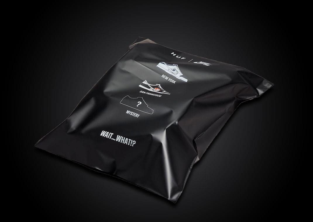 Coming in a San Francisco Giants-themed black, vast grey, and white, premium leather adorns the entire upper, providing a luxury vibe. Black overlays are paired with white underlays, and small hits of orange peeking out of various places. The Golden City is represented further via the labeling on the tongue tag, and city skyline on the back heels. HUF branding adorns the toebox with a metallic silver mini Swoosh, as well as the co-branded green insoles. The side panels on the upper can also be removed, highlighting a tie-dye print reminiscent of the HUF x Nike SB Dunk originally released in 2004. Furthering the vibe is the custom packaging. Coming in a black bag, both the "NYC" and "San Francisco" colorways elude to the "F&F" pair, which was sold to friends and family exclusively through HUF.