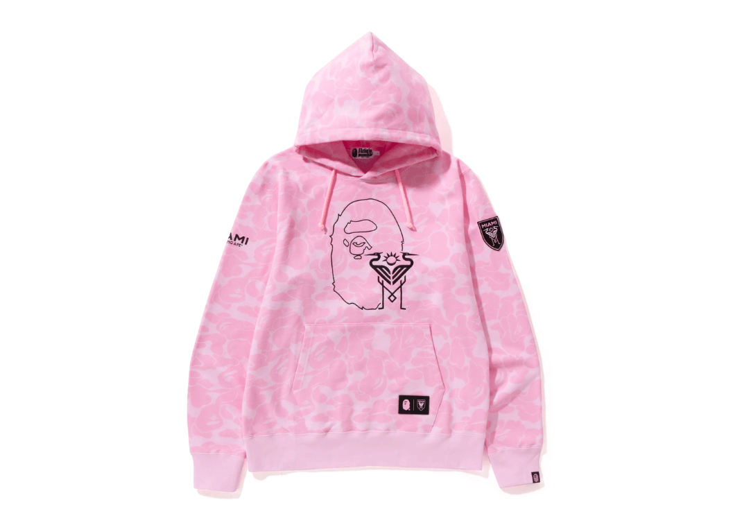 The Miami FC x A Bathing Ape collection will include apparel items, from hoodies, T-Shirts, shorts, and a hat. Covered in BAPE's iconic Camo Print the whole collection has been adapted to highlihgt Miami FC's standout pink and black signature colors. All items in the capsule will be co-branded.