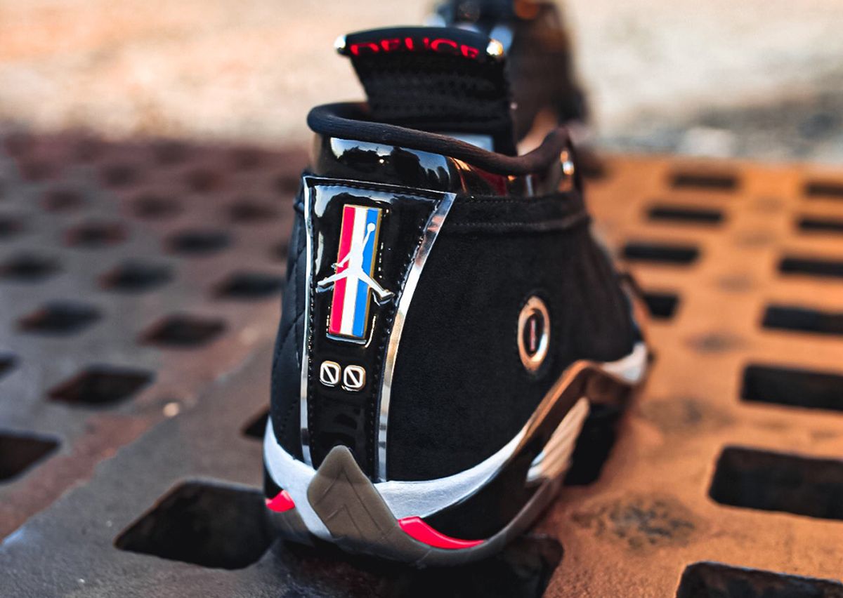 Unlike his upcoming Air Jordan 37 colorway, the majority of this AJ 14 gets covered in black with patent leather and nubuck taking over the upper with the medial side featuring a quilted leather construction. Around the toe is the aforementioned patent leather which gets accented by red Jumpman embroidery just below the vamp. This same red shade makes its way to the top of the patent leather tongue and its “Jordan” text while the reverse hosts the name “Deuce,” an homage to Tatum's son. Forgoing the Ferrari-inspired emblem on the midfoot and heel, the Tatum instead adds vintage Mustang-like emblems with the signature Jumpman branding still remaining. Rounding out the design is the AJ 14 midsole and outsole which gets a mixture of black, silver, and red throughout.