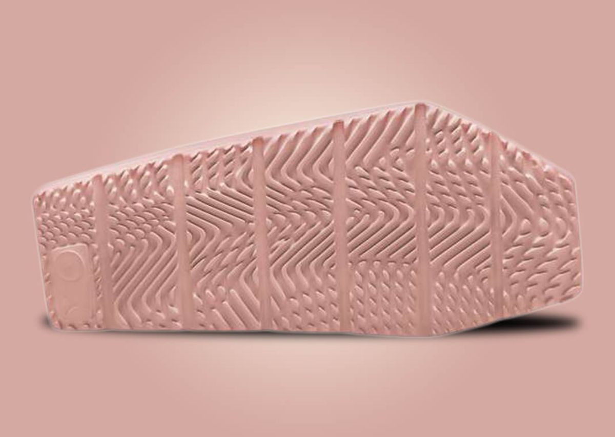 This "Legend Pink" colorway features a monochromatic pink across the Bio Foam construction. The material is Jordan Brand's eco-friendly foam that incorporates sugar cane into its composition. The slide sports minimal branding visible on the footbed and the lateral protrusion, keeping a clean look. Elements include a squared-off toe and heel, aligning with the geometric-inspired ethos of the design. For practicality, the outsole presents a Herringbone-inspired traction pattern and flex grooves, ensuring comfort and grip whether you're at home or on the go.