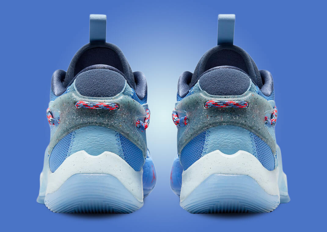 Varying hues of blue envelope the Luka 2’s upper, which contains engineered mesh and TPU, to evoke the namesake lake in Northwest Slovenia. The pop of red on the branding details atop the tongue and lace set elevates the design while retaining Jordan's heritage. Recycled portions come via the tongue's foam, as well as stitching and internal tooling throughout the sneaker. The shoe boasts full-length Formula 23 foam and Cushlon 3.0 on the medial side. Both are encased by a white midsole, with a blue outsole completing the sneaker's design.