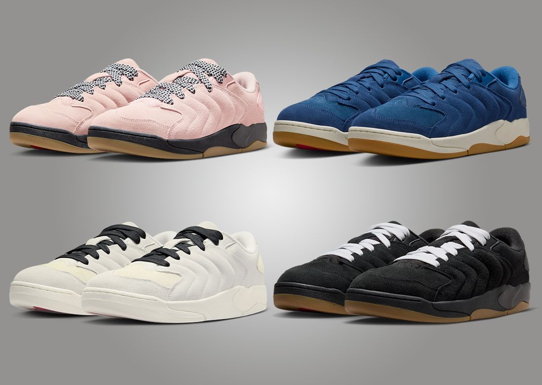 The low-top silhouette features an all-over suede construction with mesh paneling present on the tongue. A puffy, wavy design, similar to the Nike SB Vertebrae, lands along the midfoot. Small hits of leather are found on the top eyelets and on the profile of the heel, the latter containing a Jumpman logo on the lateral side.