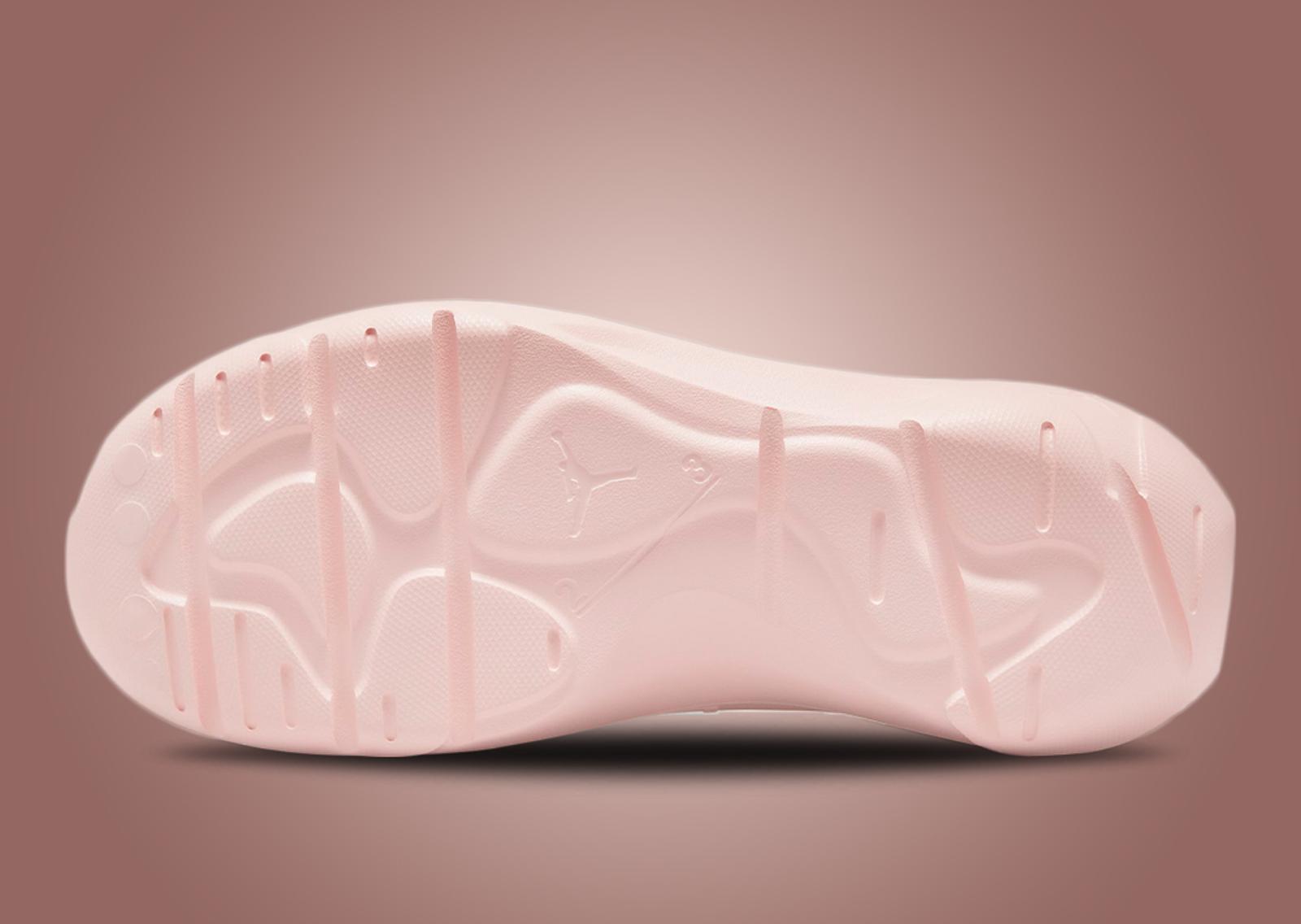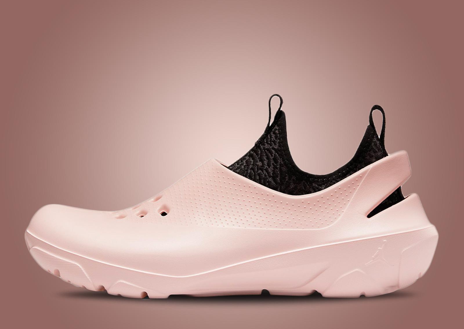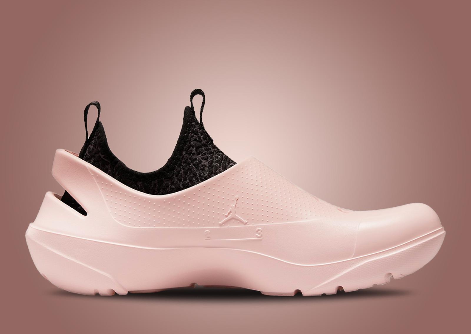 Coming in a two-piece construction, the internal knit bootie gets a two-tone black and grey look while the external foam comes in a light “Atmosphere” pink. On the knit piece, the bottom half covered in mesh is separated by overstitching details, complimenting the nylon pull tabs on the top of the tongue and heel. The foam clog features perforations on the toebox, and a textured top half while the bottom half gets a smooth finish alongside the multiple Jumpman logos. Back towards the heel, a cutout providing extra breathability resembles the adidas Yeezy Foam RNNR due to its curvature. Underfoot, the foam outsole features a light traction pattern.