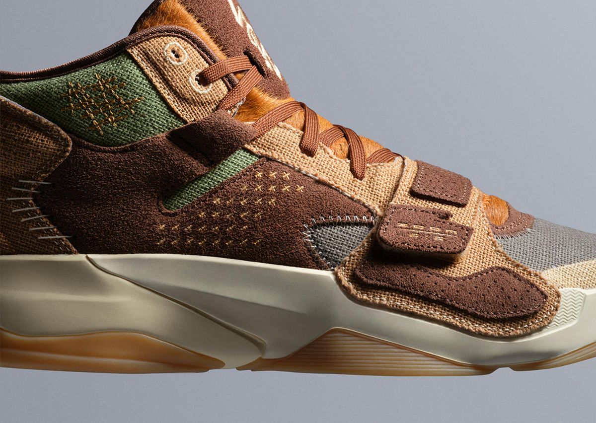 Zion Williamson’s absence from play in his second year hasn’t stopped Jordan Brand from releasing the second signature model of the young NBA player’s signature line. The shoe features sharp, angular geometric cuts with pockets of mesh on the upper. The massive heel counter flows from the back of the ankle collar, down into the midsole, giving the sneaker a sturdy and rigid appearance. The various pods on the outsole feature massive outriggers, a feature found in the first Zion signature sneaker, the Jordan Zion 1, as an added measure of stability to keep Zion’s massive frame from rolling over the footbed of the sneakers.