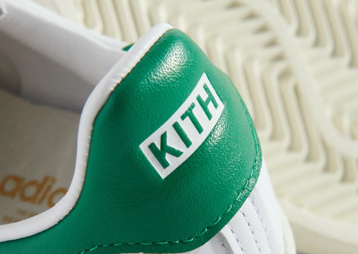 While all four pairs in the pack retain a similar color palette through the neutral greys and whites, each pair comes with unique details to differentiate each from one another. Some things remain true across all pairs, like the green heel tabs, co-branded details, and grey Three Stripes branding (sans the written SC Premiere that features written branding), while we see pairs like the Samba come with a contrasting midsole. The other three models partake in a sail makeover for their sole units while once again the SC Premiere differs from the pack as it features silver foil Kith branding as opposed to the golden text found on the other models. Rounding out the look is the tonal rubber outsole matching each respective midsole.