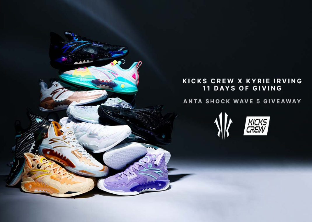 Marking the commencement of this partnership, Irving will be teaming up with KICKS CREW for Kyrie’s annual 11 Days Of Giving Initiative. From December 11th to December 15th, 2023, they are giving away 111 pairs of the ANTA Shock Wave 5, the sneaker Kyrie has been sporting since signing with the Chinese sportswear brand.