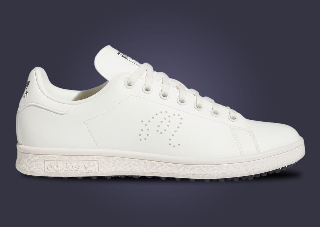 The collection also includes a reinterpretation of the adidas Stan Smith Spikeless Golf shoe. Staying true to its classic roots, an off-white all-leather upper is present while the sneaker deviates from the traditional Three Stripe perforations. Instead, it features Malbon's "M" logo perforated on the midfoot, adding a distinctive touch to the iconic silhouette. The shoe maintains the classic Stan Smith branding on the tongue and heel, while an off-white midsole paired with a spikeless navy outsole ensures comfort and functionality on the green.