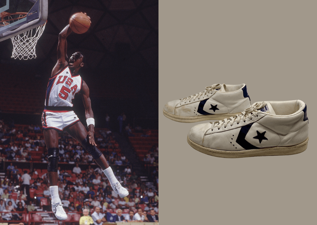 This piece of treasure is none other than the classic Converse All-Star. MJ was often spotted wearing Converse sneakers before his signing with Nike, and this pair worn against Mexico and Canada has been photo matched to the 1983 Pan American Games. In this tournament, MJ earned his first gold medal and set the stage for his international career we would later see with the Dream Team in 1992