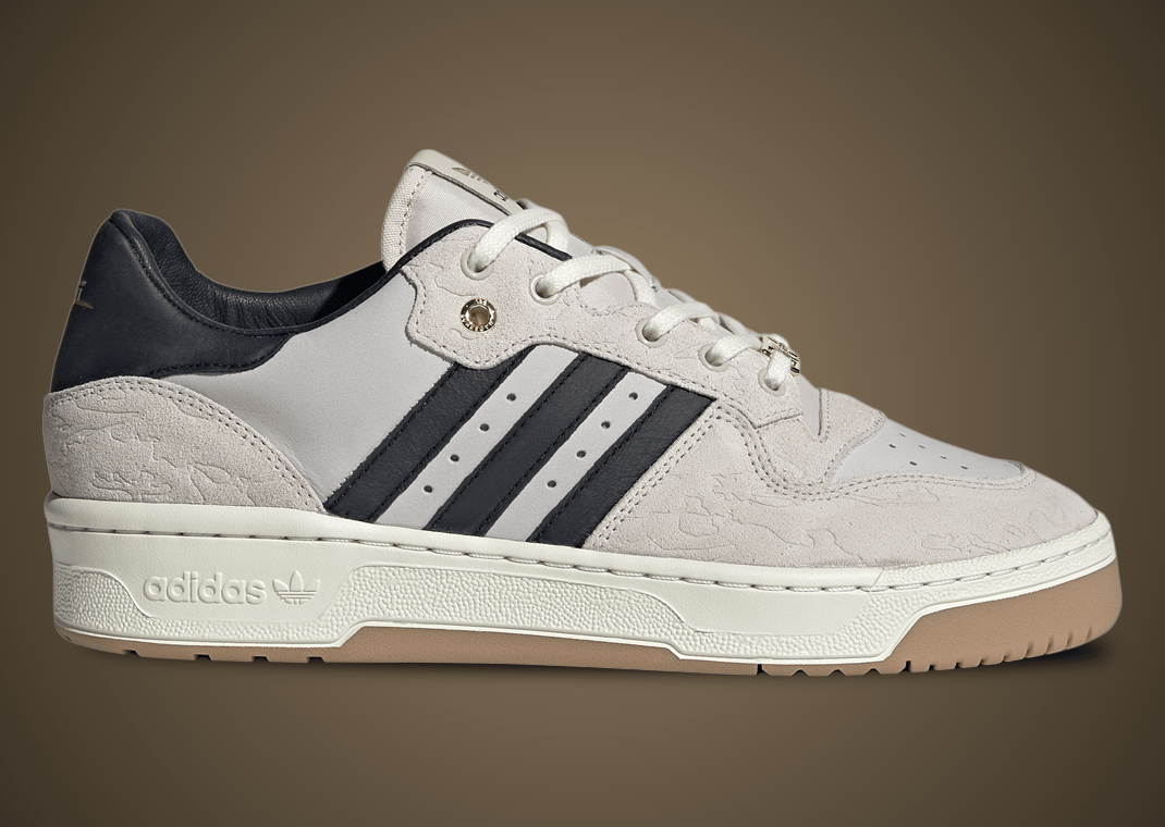 The Nadeshot x adidas Rivalry sneaker is a perfect marriage between the aesthetic of 100 Thieves and the classic sporty style of the adidas Rivalry. The design features a palette that aligns closely with the 100 Thieves' new jersey designed by adidas. Neutral tones dominate, with textured suede overlays providing a premium look and feel. These are complemented by sharp black leather accents that form the iconic Three Stripes on the midfoot, extending to the heel tab and sockliner. Notably, the heel tab boasts Nadeshot’s branding in an eye-catching gold, while a metallic gold eyestay spells out 100 Thieves, enhancing the exclusive vibe of the shoe. A cream-colored rubber midsole and a classic gum rubber outsole round out the design, ensuring that the shoe is as functional on the street as stylish in the gaming lounge.