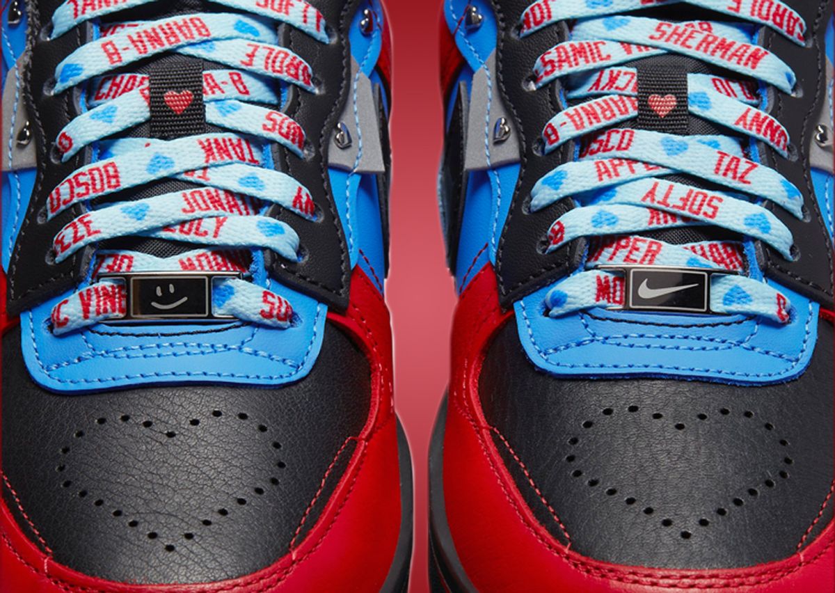 A women’s exclusive design, the Nike Air Force 1 Fontanka features a layered upper, lifted midsole, and React foam cushioning in place of traditional Air. This “Doernbecher” edition comes in a university red, black, light photo blue, and copa colorway. Sporting a multi-color leather upper, heart details are found via the studs on the side panels, below the eyestays, back of the heel, and perforated on the toebox.