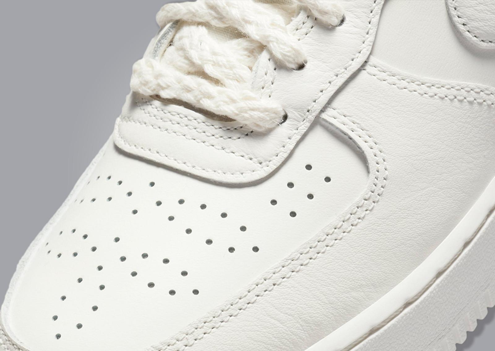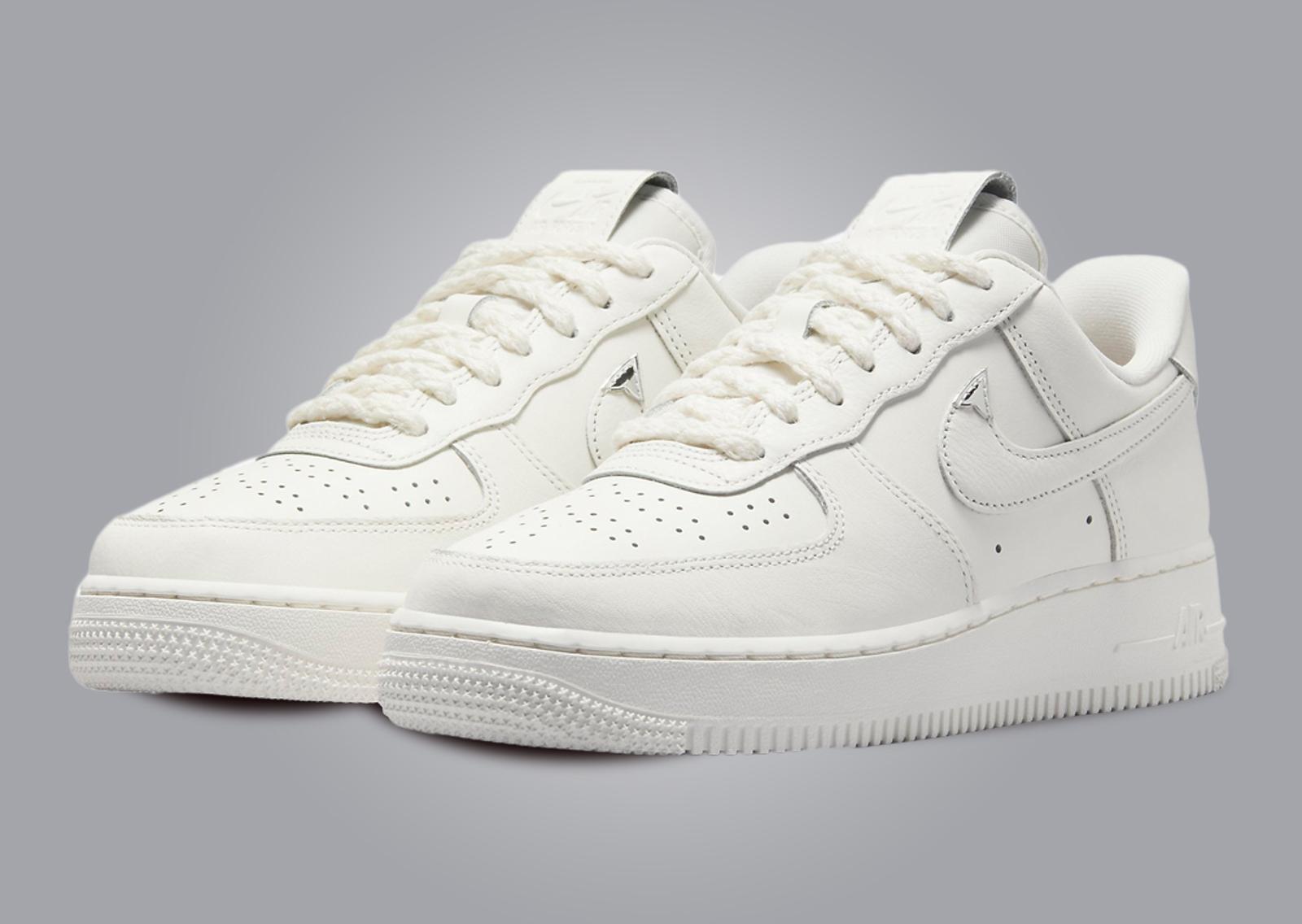 From a distance, this AF1 looks like your classic white-on-white release, but upon closer inspection you'll find that there's much more than meets the eye. Outfitted in smooth sail leather that feels and looks pretty premium, one of the first things that you'll notice are the toebox perforations which have been reworked to form a pattern that you would usually find on a traditional pair of brogues. Elsewhere, the Swooshes across the sides are accented with metallic silver, and around the back you'll find "Nike" debossed as if it were written using a needle, nodding to the name of the shoe. This is blinged up with a single diamanté jewel which sits on top of the letter "i," and this graphic can also be found printed on the tawny brown insole. To round it all off, the conventional flat laces have been switched out with a pair of rope ones for a tailored aesthetic that is sure to turn heads wherever you go.