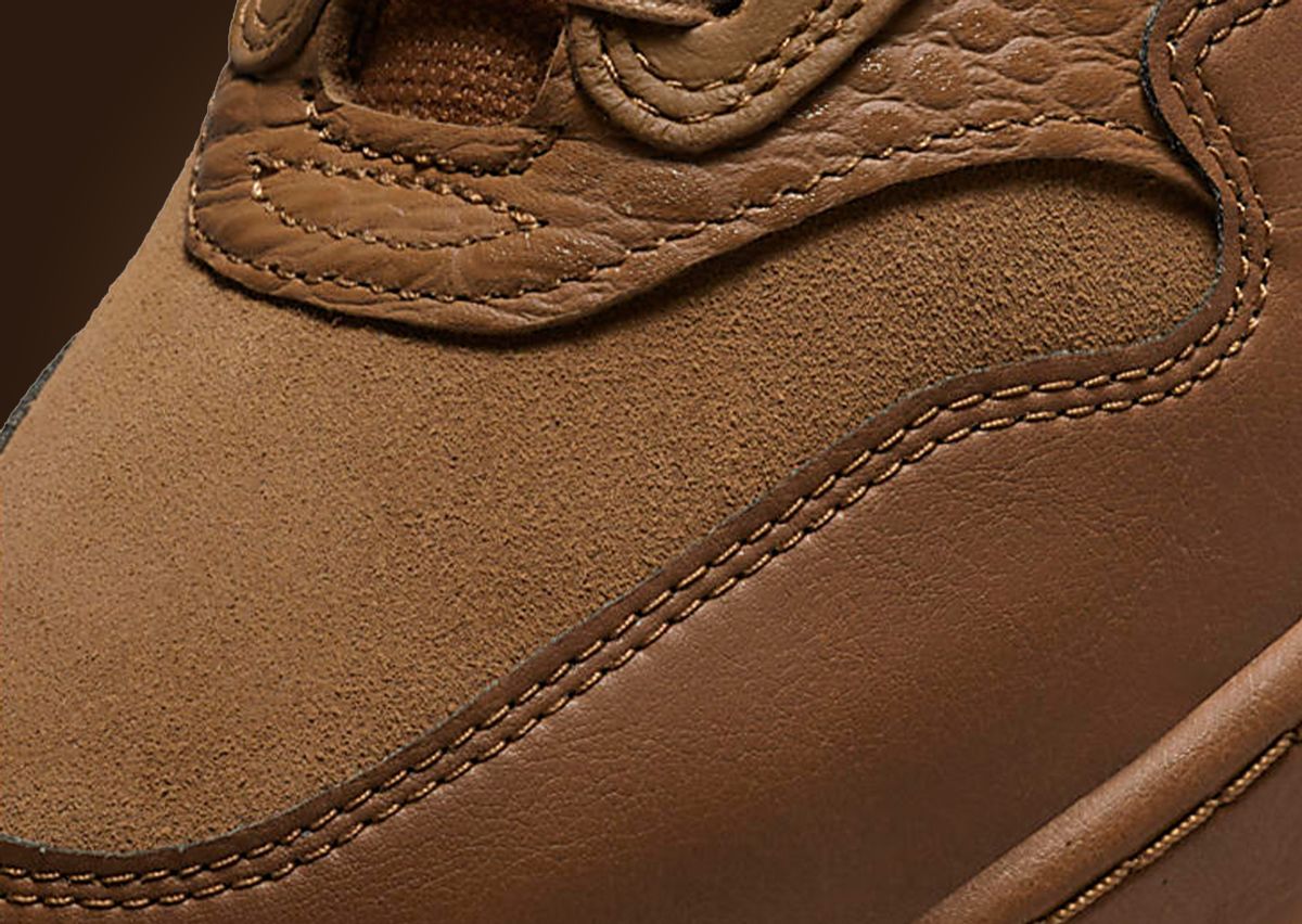 Sticking to a monochromatic brown across its leather and suede-covered upper, the sneaker features premium details all throughout. Smooth brown leather is placed on the mudguard, quarter panel, heel, and collar, while the toebox features a short-haired suede finish in a similar brown hue. The laces and tongue continue this brown theme while the leather tongue tag up top gets a debossed “Nike Air Max” branding detail, matching the Nike Swoosh found along the midfoot. As for the heel tab, another debossed branding detail comes in the form of the “Nike Air” text, sitting on a lighter brown panel that is placed between two darker brown leather overlays. An even more lux detail is found on the sole unit with the usually exposed foam being covered in leather, similar to a work boot, and features lighter brown stitching details attaching it to the upper. Rounding out the design is a gum rubber outsole.