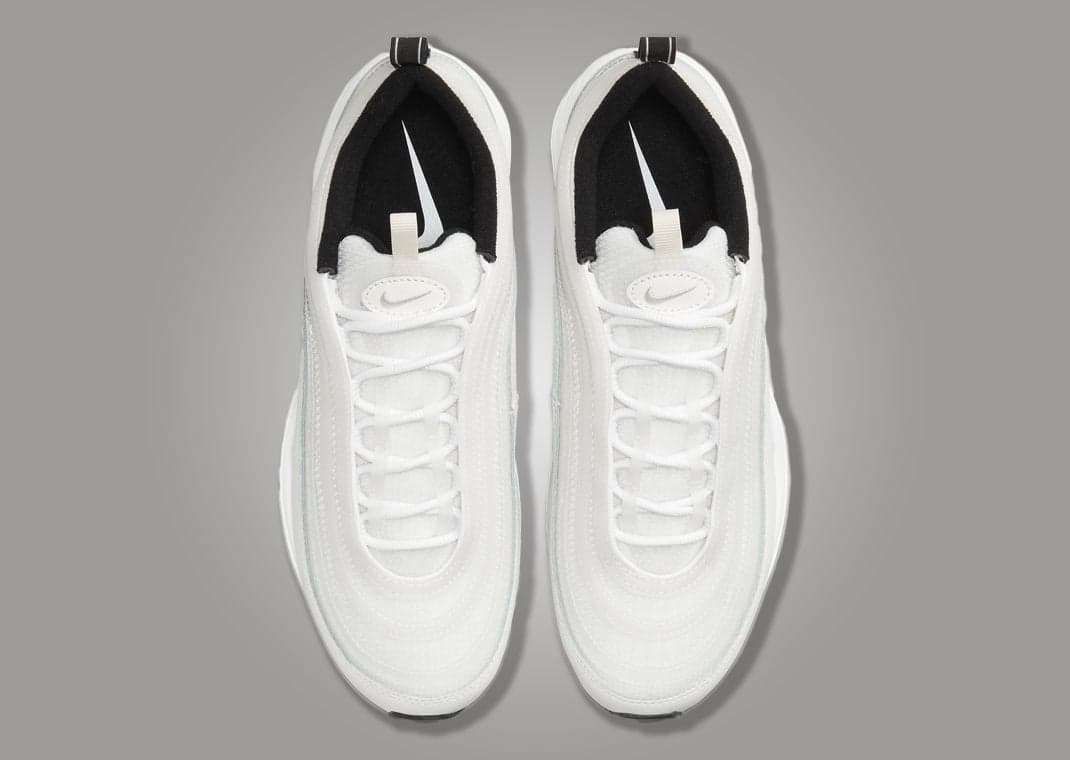 Coming to us in a clean “White Sail” color combo, the Air Max 97 Translucent TPU stills features the classic wavy Japanese bullet train-inspired design across its upper with the mudguard still getting dressed in leather. Just above this where we normally would see more leather panels intertwined with mesh layers is a translucent TPU material that showcases the mesh layers below. All of this takes on a clear finish while the leather panel and mesh tongue come in shades of white and sail. Black accents appear on the pull tab and sockliner while the design comes complete with a white Air Max 97 midsole paired with a black and white rubber outsole.