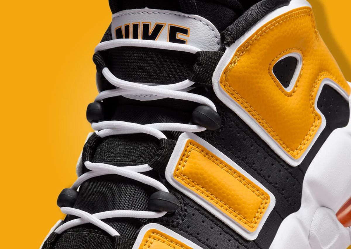 The Nike Air More Uptempo is one of the first pairs set to be released in this new collection. Coming in black, white, and university gold, the Nike Air More Uptempo Be True To Her School edition sports an all-leather upper. Black covers most of the sneaker, which is highlighted by university gold accents on the branding, the AIR on the sides, and the visible Max Air cushioning in the heel. Helping to break up the two-tone black and yellow color combo is white, highlighting the laces, underlays of the AIR branding, and the midsole/outsole. Be True To Her School branding on the insoles ties everything together.