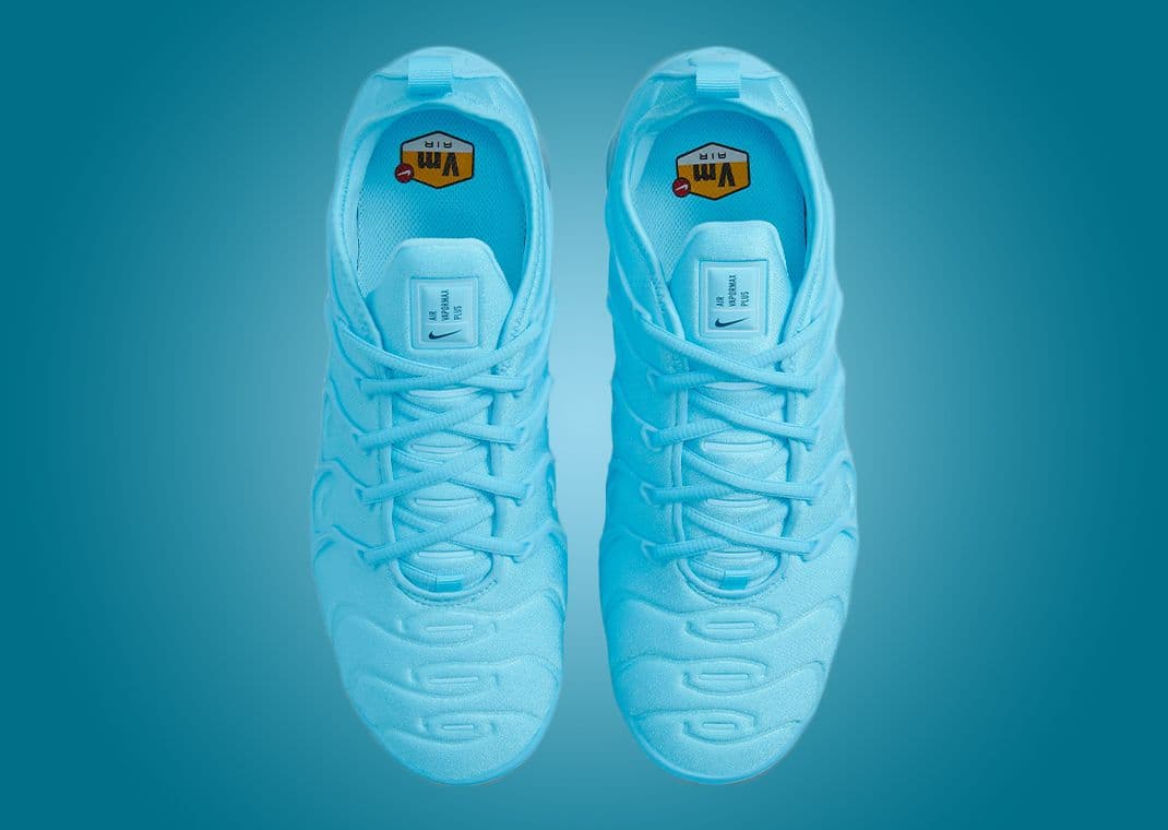 The Nike Air VaporMax Plus “Blue Chill” comes in blue chill, white, black, and metallic silver. Featuring an all-blue design, the padded upper, floating cage, laces, back heel pull tab, liner and insoles all come in the same blue chill shade. A lighter shade of blue dresses the midsole, which sits atop the full translucent blue chill tinted VaporMax cushioned sole. A metallic silver Swoosh is found on the ankle while custom VaporMax/TN Air branding is found on the back heel and insoles.