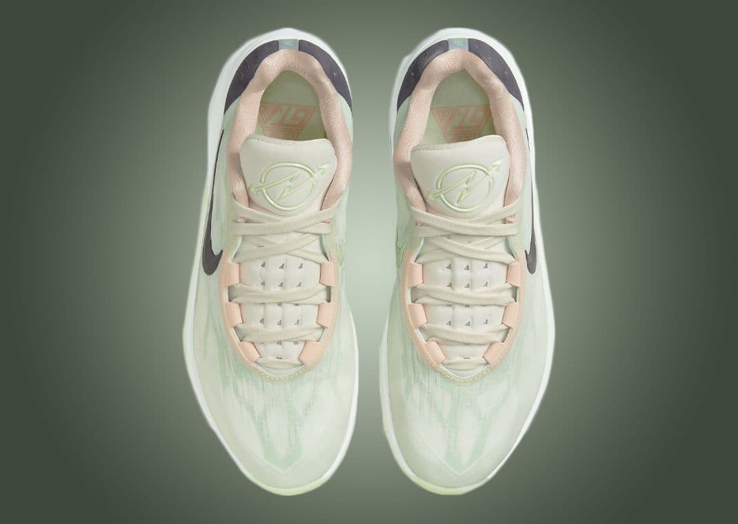Boasting a barely green textile upper that's as clean as it gets, a black Swoosh shoots across the lateral side panel with a glossy finish. Soft arctic orange accents descent upon the lacing system and sockliner, and the star of the show has got to be the Zoom Strobel midsole that was first seen on Kevin Durant’s KD 12. Offering unrivalled comfort, response and support, this is paired with a brand new heel counter and grippy Smear Traction 1.0 outsoles that make these ideal for both the court and the street.