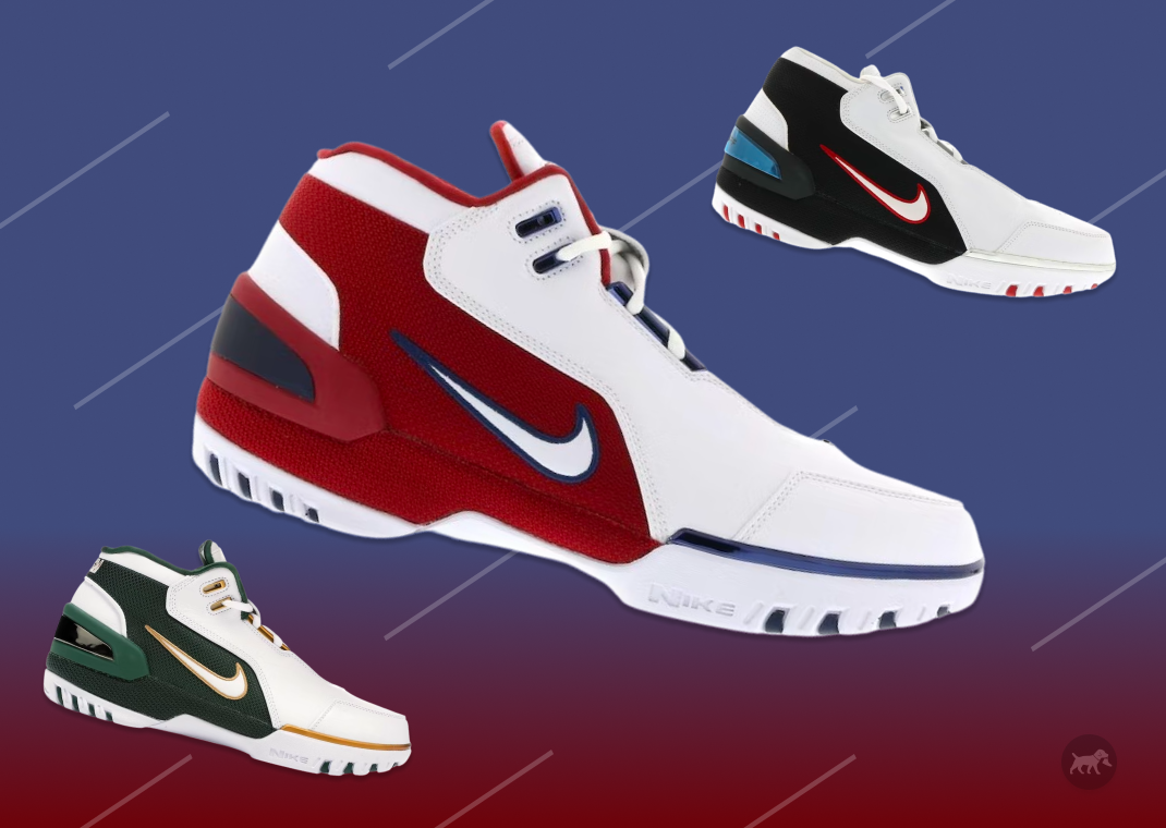 The Air Zoom Generation was originally released in eight colorways with three of them coming in low-top. However, we have seen James rock pairs past the original run from 2003-2004 like the upcoming “Purple Suede” PE that will release to the public in 2023. Other notable classics include the “First Game” (also returning this year) with its patriotic red, white, and blue color palette. Aptly given its name due to the fact LeBron rocked the pair in his first-ever home game in the NBA, the upcoming retro of the colorway features the date (11/05/2003) embroidered in gold on the sockliner.
