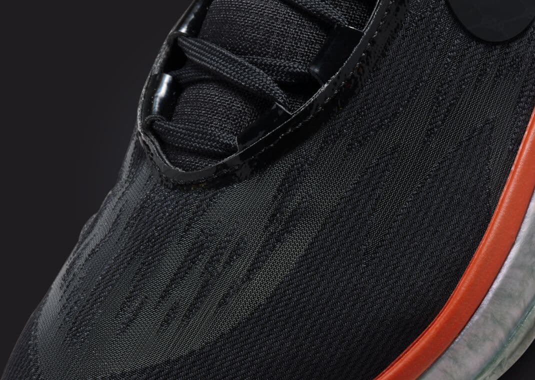 Designed with precision and keen attention to detail, the Zoom GT Cut 2 takes on a subdued, dominant black shade across its construction. Crafted from engineered mesh, TPU, and neoprene, this shoe seamlessly integrates performance and style. Notable highlights include iridescent detailing that adds a captivating shimmer on the tongue lining, the GT and Swoosh logos, and even the robust TPU heel counter. The shoe is not all stealthy, though. Vibrant red accents emerge on the heel tab and the heel's base, lending a pop of color to an otherwise monochrome design. For players demanding top-tier cushioning and traction, the GT Cut 2 does not disappoint. The iridescent midsole, containing Air Zoom Strobel stacked with Zoom Air in the heel, ensures plush comfort with every step, jump, and pivot, while the black and silver rubber outsole offers a stellar grip on the hardwood.