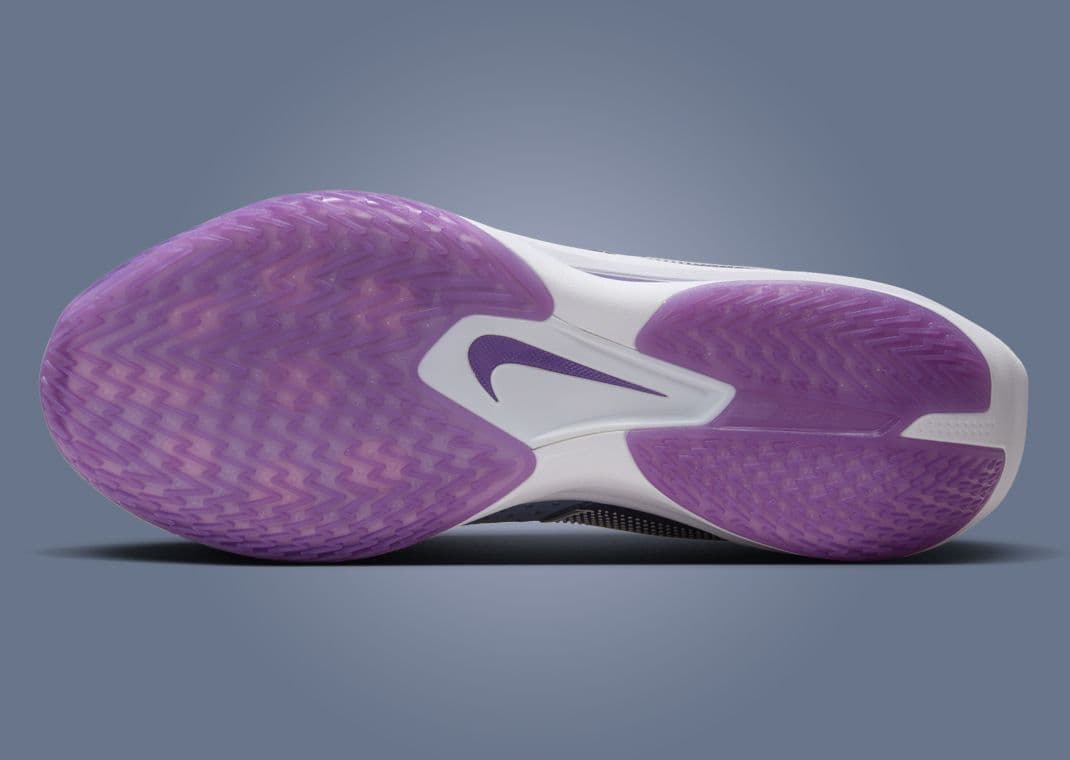 Inside, the sneaker pays homage to its inspirational roots with retro-like Nike branding on the left shoe and the empowering "Be True To Her School" phrase on the right, underscoring the importance of representation and inclusivity in athletics. The design is anchored by a full-length ZoomX foam midsole, providing unparalleled responsiveness and comfort. The midsole's blue and purple hues seamlessly complement the upper, while a purple semi-translucent rubber outsole ensures optimal traction on the court.