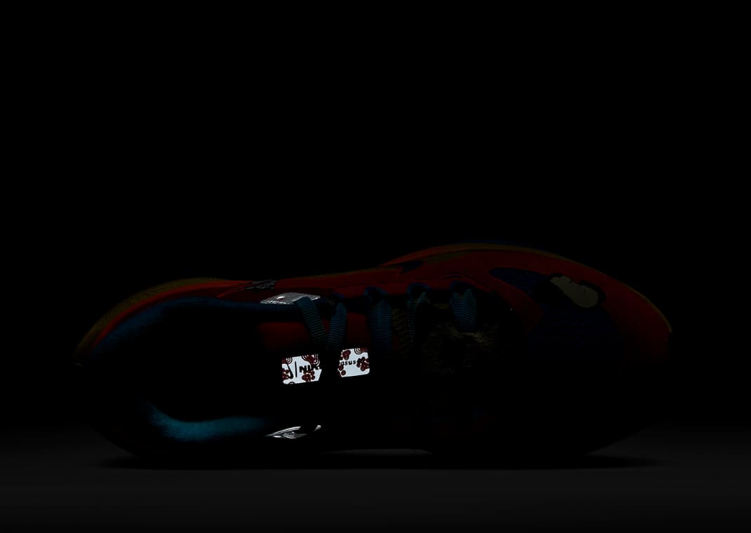 Lightning bolt details are applied to the black overlays near the front portion of the upper, symbolizing the electronic glucose monitoring device Ja’Kai has to wear. Ja’Kai’s name and jersey number are placed in a font one might find on a soccer jersey, nodding to his love for soccer. Branding along the tongue is redesigned with a “T1D” logo meant to inspire other kids who are type 1 diabetic. Finishing his design is the blue glow-in-the-dark outsole.