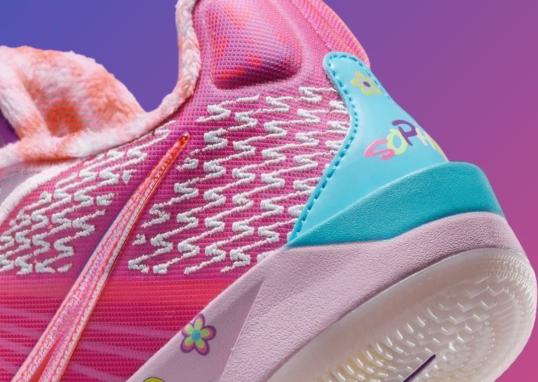 Sophia Jenkins is only nine years old but already has more resilience than most. She didn’t let her Osteosarcoma diagnosis, a rare and aggressive bone cancer that led to her losing part of her right leg, slow her down. Her dream is to become a parasport athlete, and she’s already taught herself to do a one-legged backflip. On Sophia’s Sabrina 2, she integrates everything in her life that brings her comfort, from the pink fuzzy blanket she’s had since she was a baby to floral stickers and her pickle stuffie. Pink and purple hues take over most of the sneaker, with blue and red tie-dye pops featured on select details.